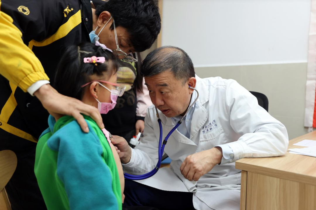 ▲济南市中心医院专家为患儿听诊 摄影:刘勇贞