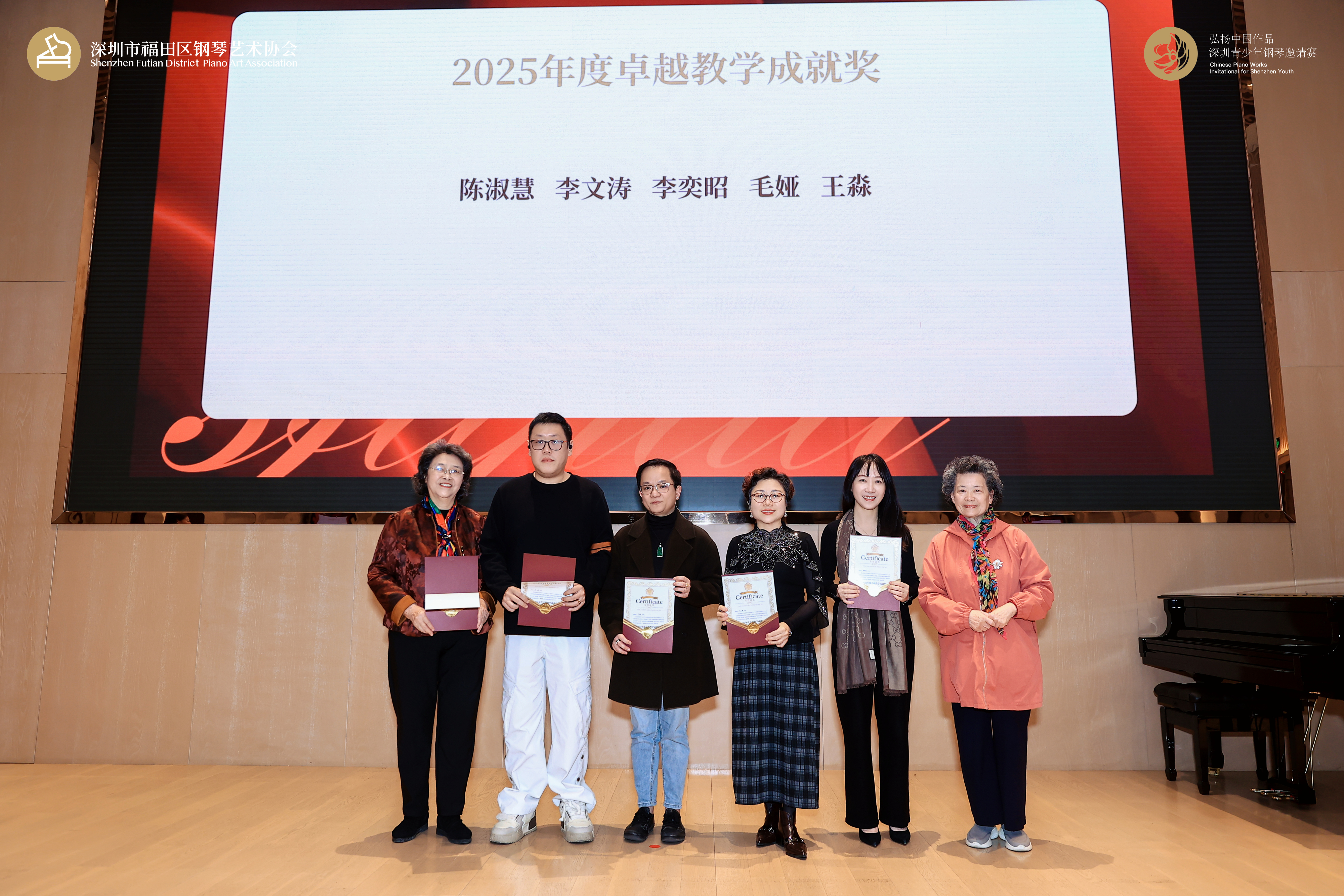 大会对2025年度优秀钢琴教师进行了表彰,设立“优秀教学成果奖”“杰出教学贡献奖”“卓越教学成就奖”。获奖教师代表李文涛、王淼分享了教学与推广中国作品的经验,并对赛事专业性及公益意义表示肯定。