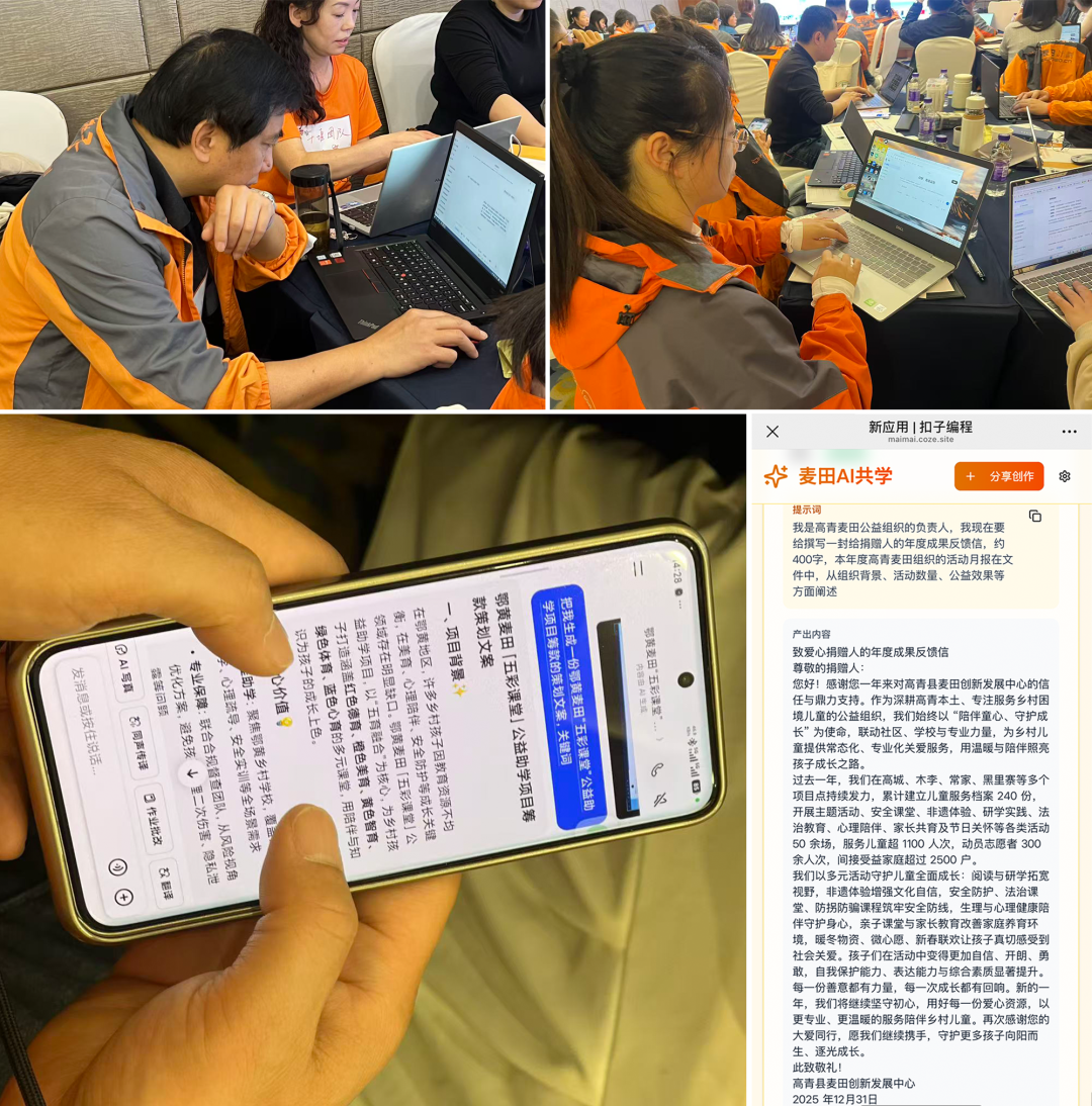小韩老师和麦客中心负责人冰冰均强调,公益的核心永远是人。AI是强大的“实习生”和“增效工具”,但项目的设计、价值的判断、伦理的把关、情感的连接,必须由公益人来完成。
